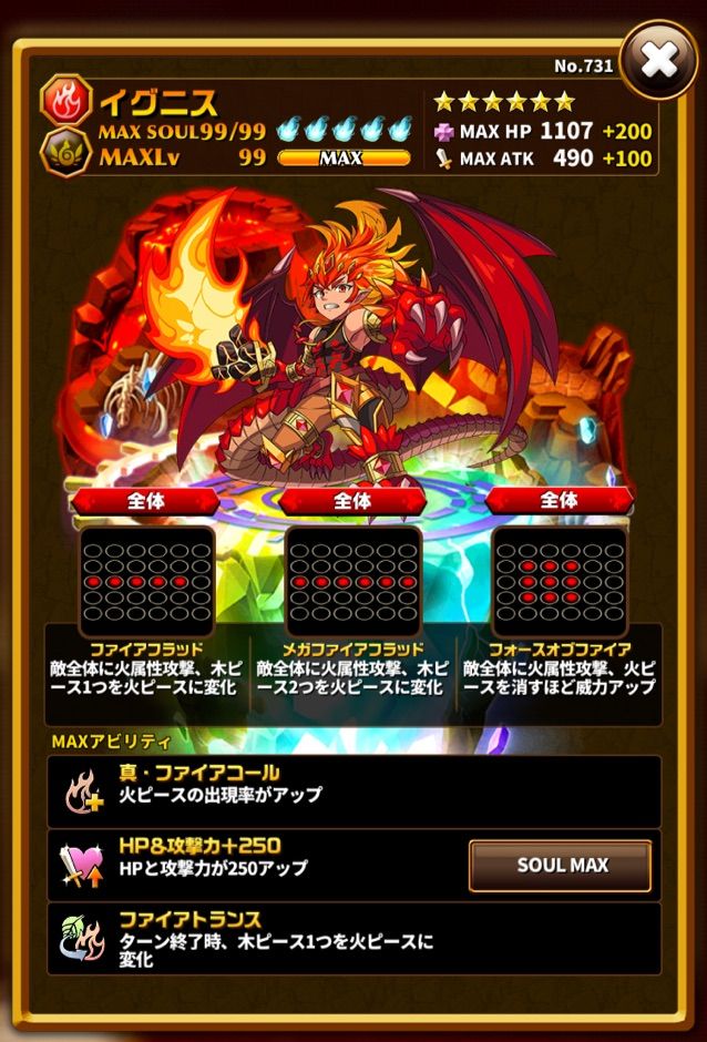 全体攻撃で変換付きとは言え、スキル2までは火力が低い。スキル3は火ピースが大量にある場合はかなり高い威力を狙えます。