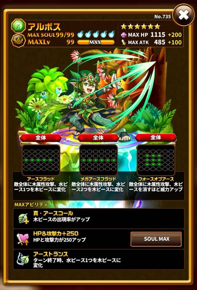 全体攻撃で変換付きとは言え、スキル2までは火力が低い。スキル3は木ピースが大量にある場合はかなり高い威力を狙えます。