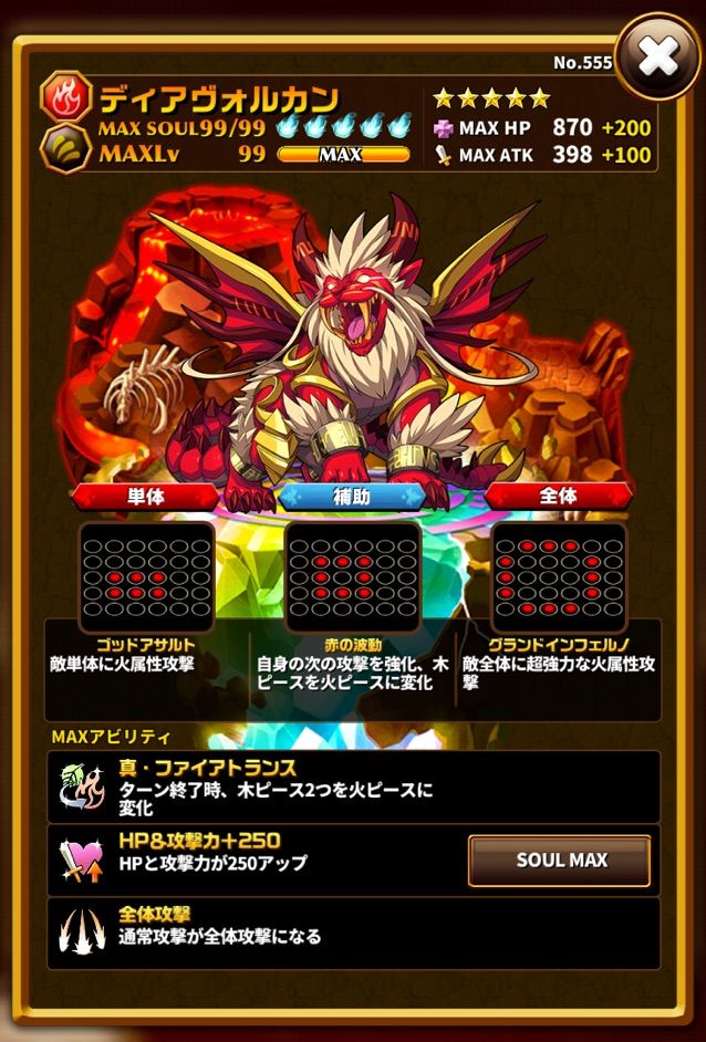 ただ、高い攻撃力が確保できている場合、ディアヴォルカンのHPは20万程度なのでやられる前に一気に攻撃して倒してしまう方法もあります。