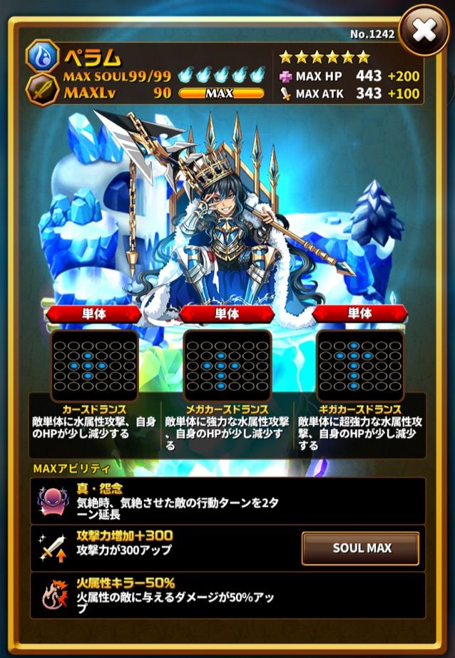 スキル2ですので、特にアリーナではスキル補正がスキル3に比べて緩く、ダメージを出しやすいスキルになるでしょう。