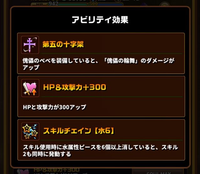 また、6回攻撃するには同時に水ピースを6つ消してスキル2をスキルチェインで発動させてやらないといけないので注意しましょう。