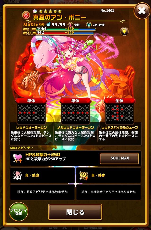 ちなみに、連撃の要である余剰ピース倍率ですが1ピース0.05倍で実質0.15倍というクソみたいな倍率に設定されており、なんのロマンもない仕様になっています。