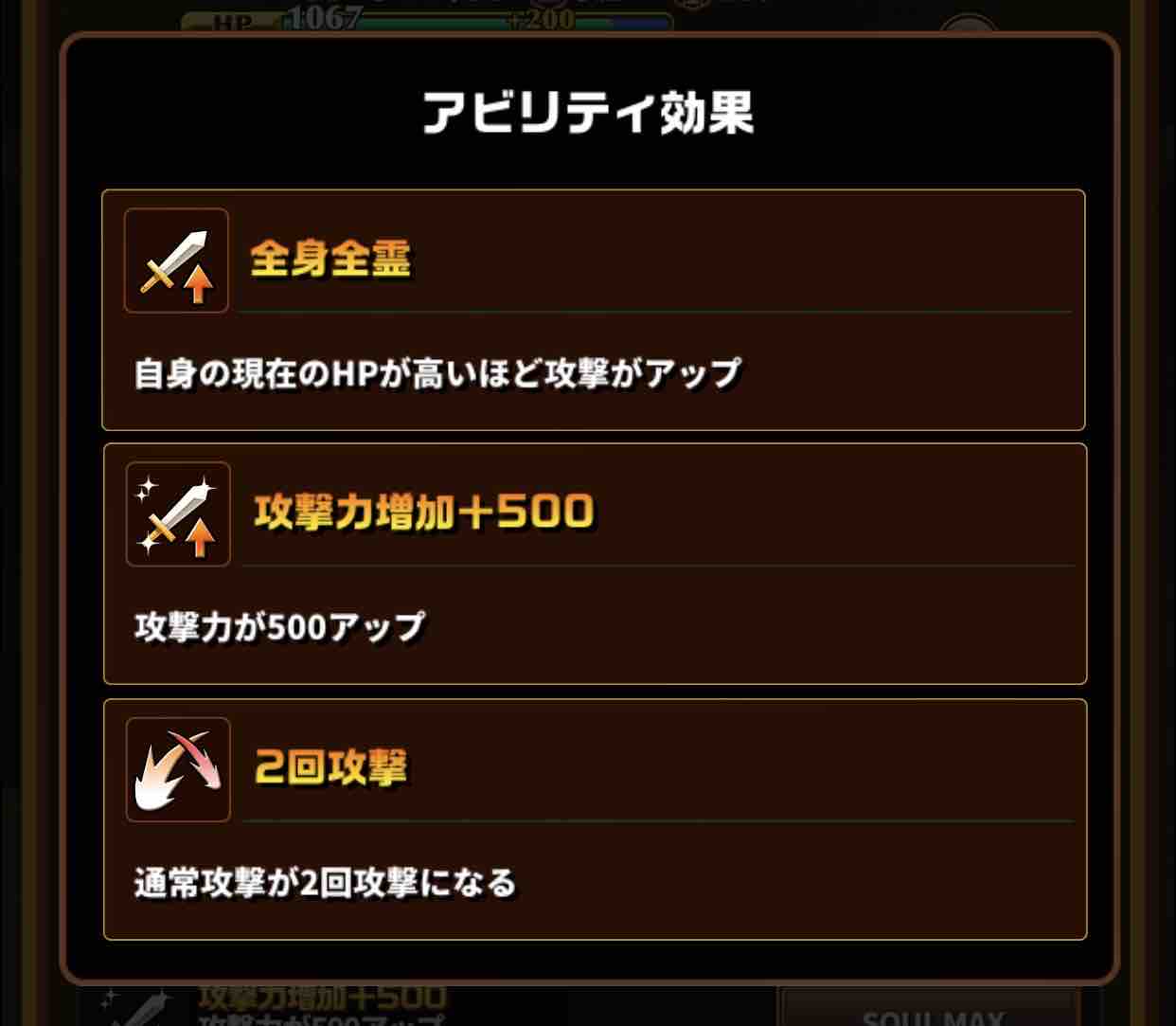 アビリティによって、HPの割合が高いほどすべての攻撃に補正がかかります。