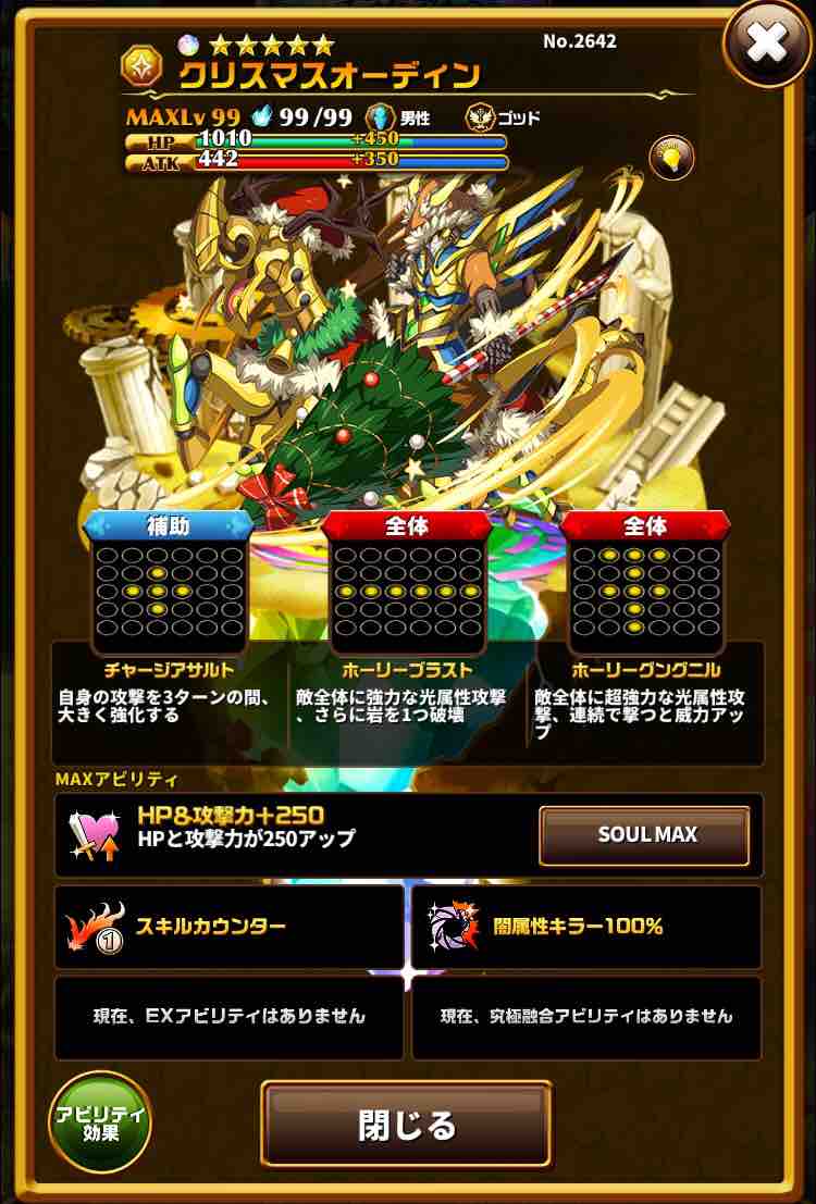 オーディンはデビルキラーでしたが、クリスマスオーディンは闇キラーなので汎用性が段違いに高いです。