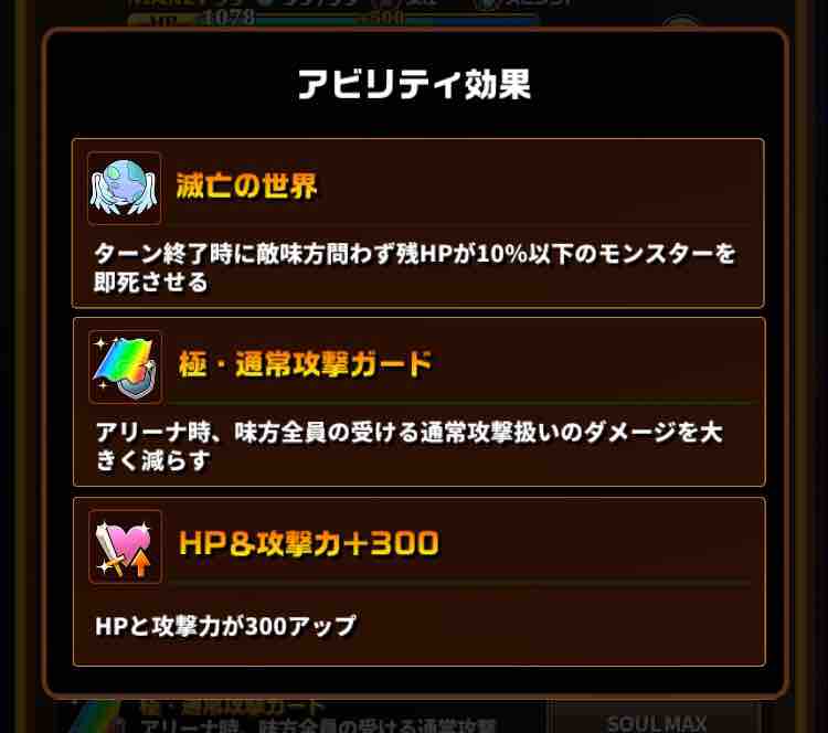 アビリティ「滅亡の世界」スキルの発動も攻撃も必要なく、敵がHP10%以下ならば即死させることが可能です。