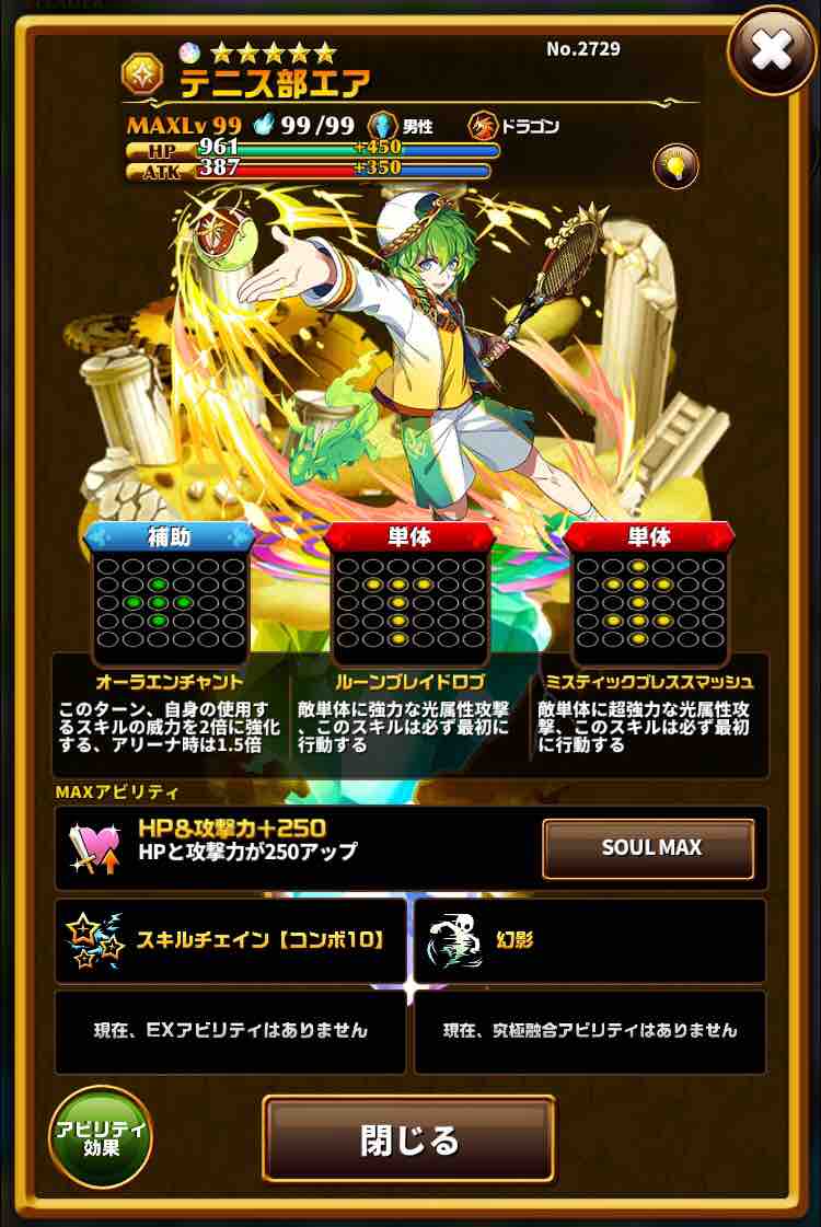 エレスト学園2019イベントで登場したテニス部エアの試練でゲットできます。ステータス