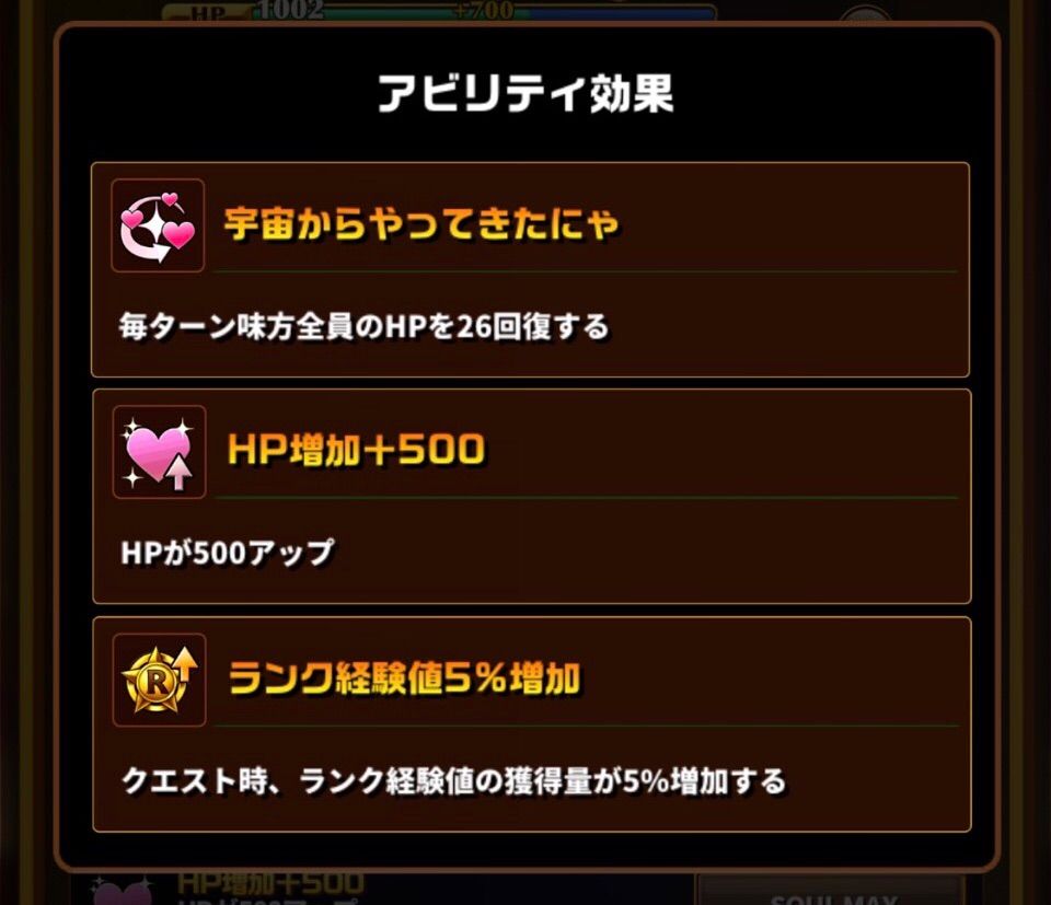 他のランク経験値UP系よりも増加効果は少ないですが、変換能力はつかいやすく周回に参加させやすくなっています。