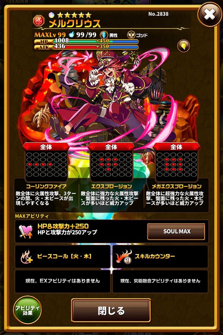 レベッカと違うのはレベッカは火と光、メルクリウスは火と木です。