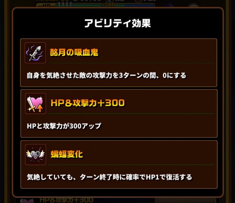 アビリティ「酪月の吸血鬼」アビリティ「蝙蝠変化」
