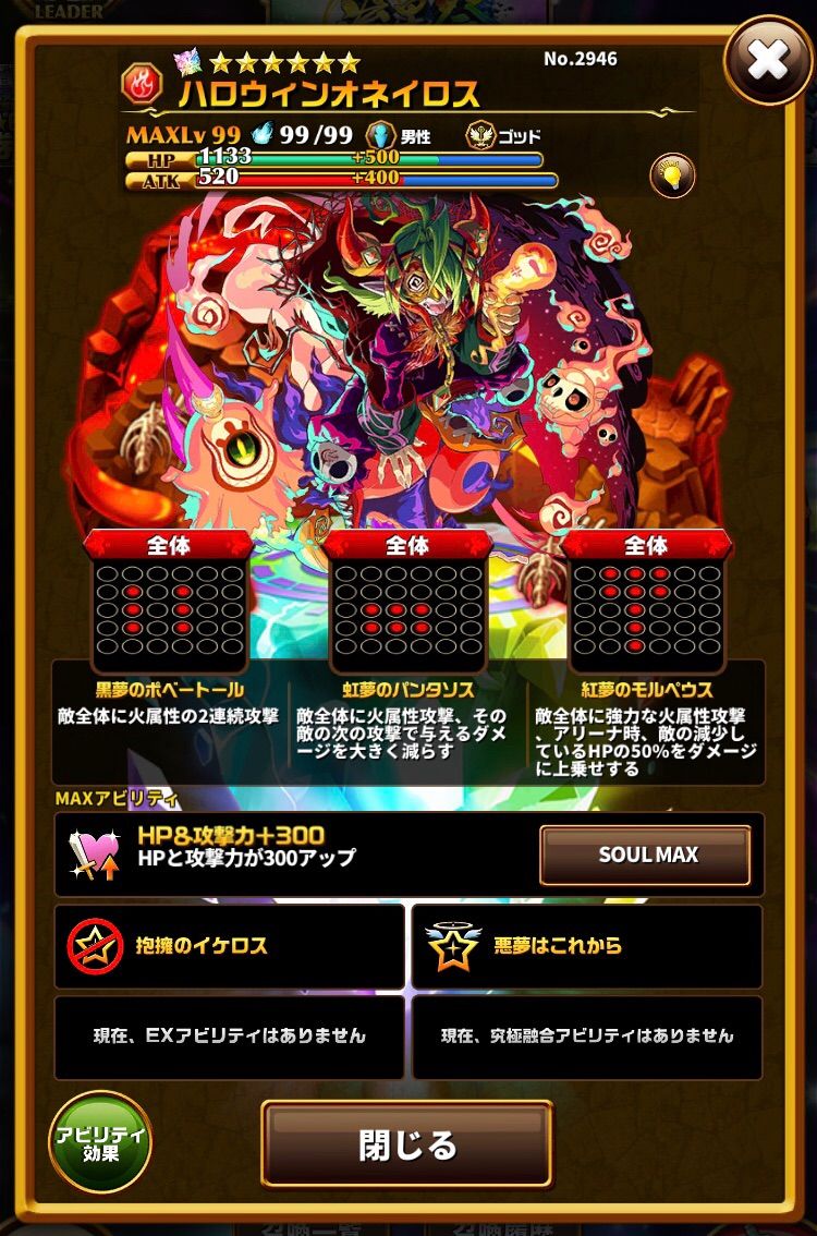 相手はハロウィンオネイロスのアビリティを封印するか、HPが高い状態でハロウィンオネイロスを倒すかする必要があり、対処が大変なモンスターです。