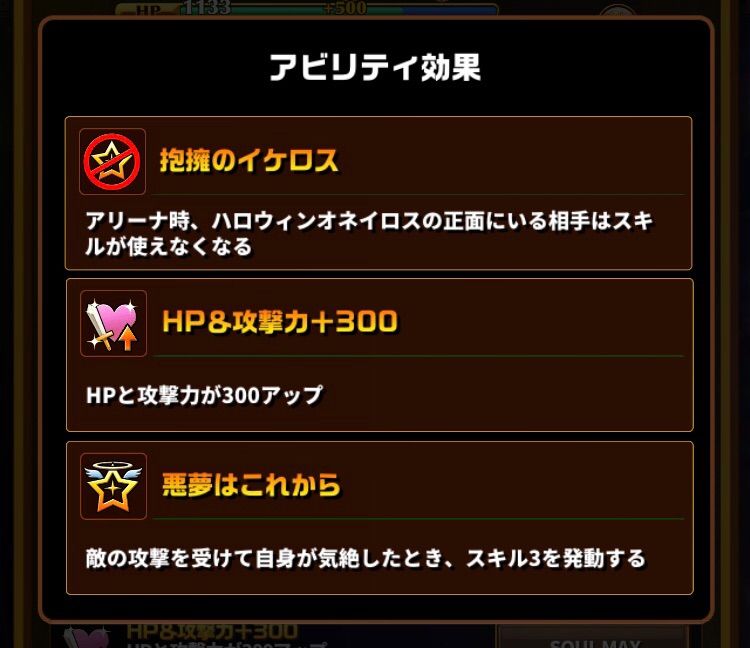 さらに、ハロウィンオネイロスはラストスキルと同じアビリティをもっており、自身が気絶したときにスキル3を発動します。