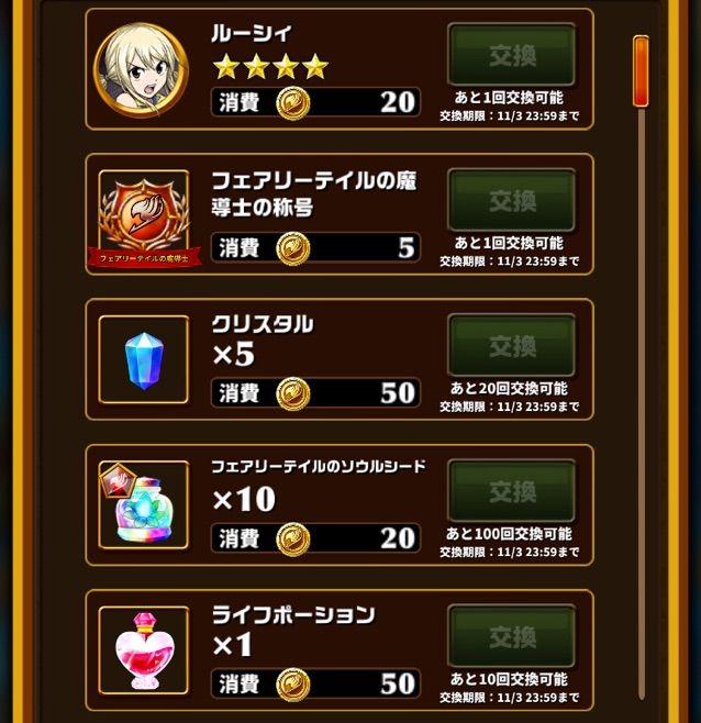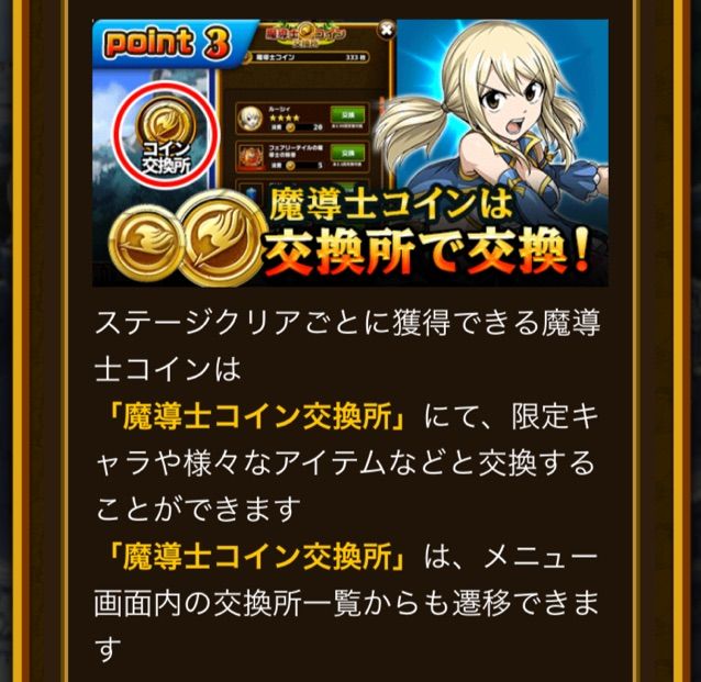 コインを集める場合はなるべくフェアリーテイルコラボキャラをチーム内に編成しましょう。