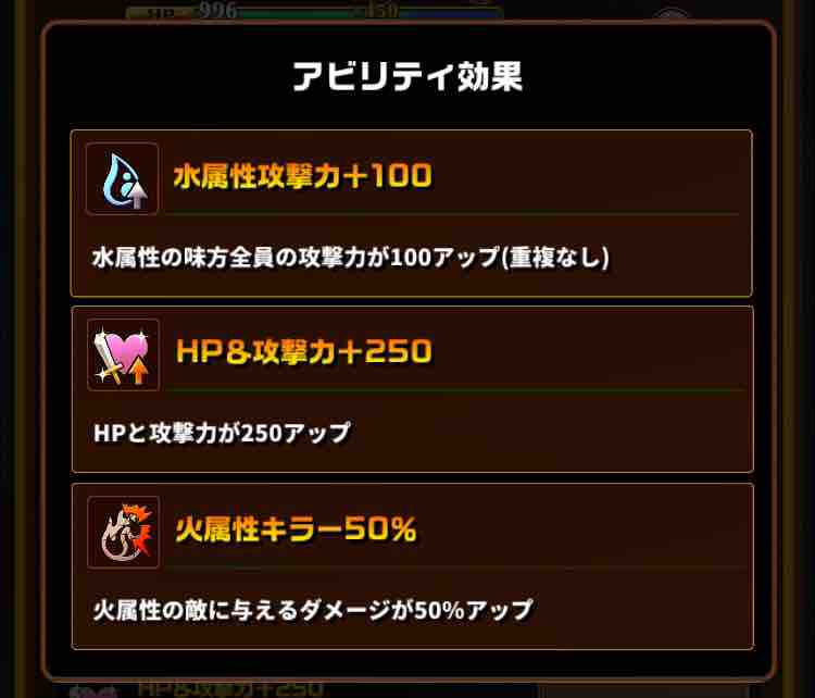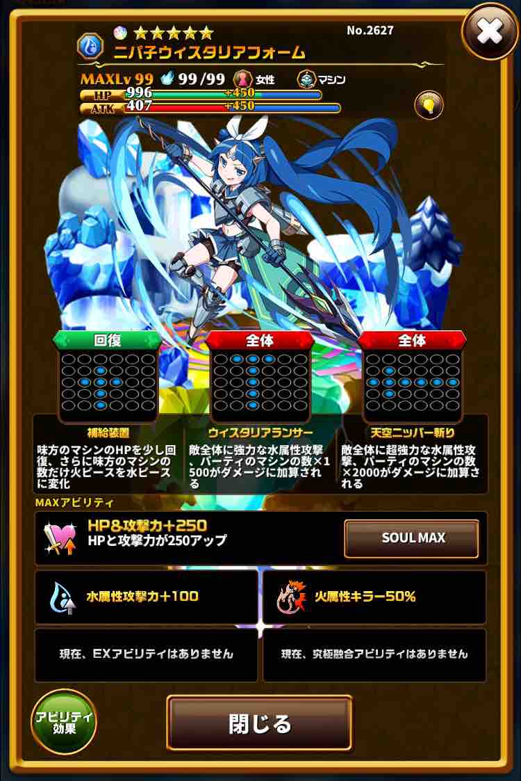 攻撃UPとHPUPも持っており耐久力も高い。水属性の攻撃力も上げられるためPT全体の攻撃力も上げられます。