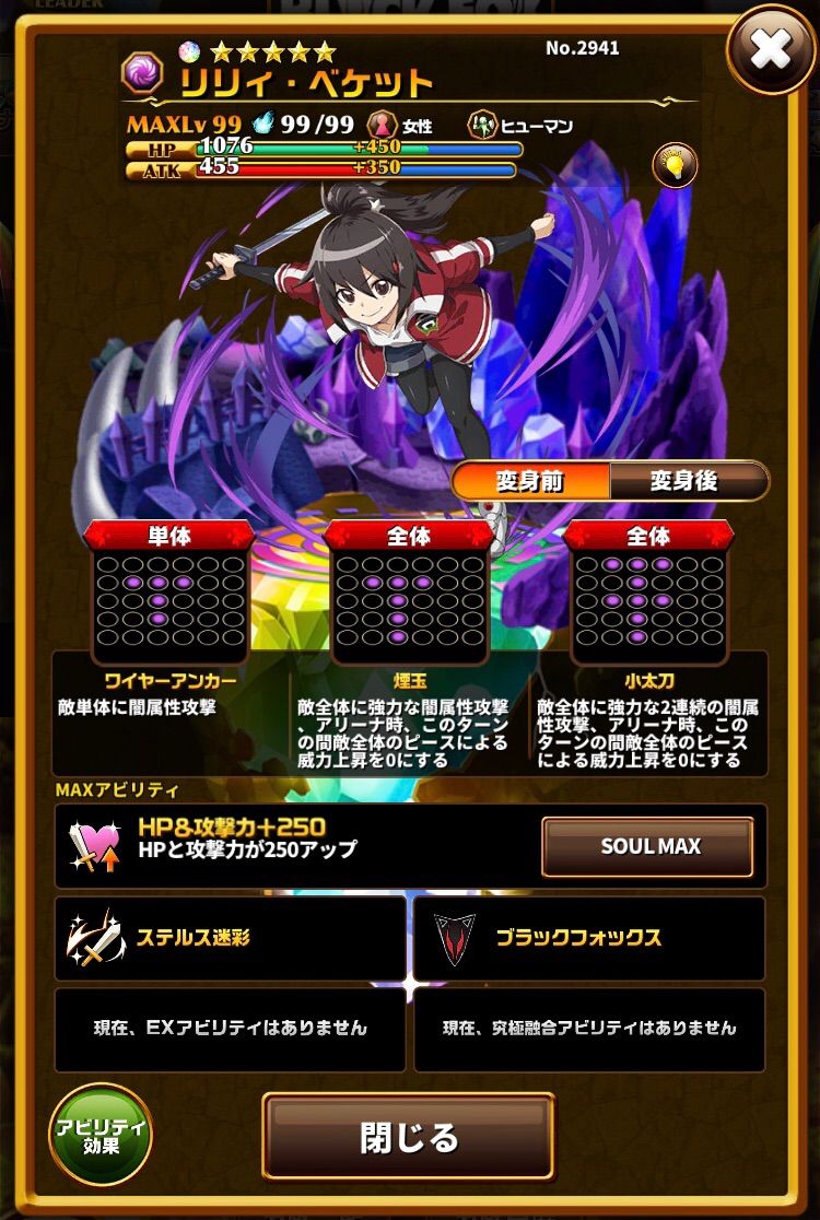スキル3は盤面の光ピースに左右されるようなスキルもちと組ませることで力を発揮できるシーンもありそうです。