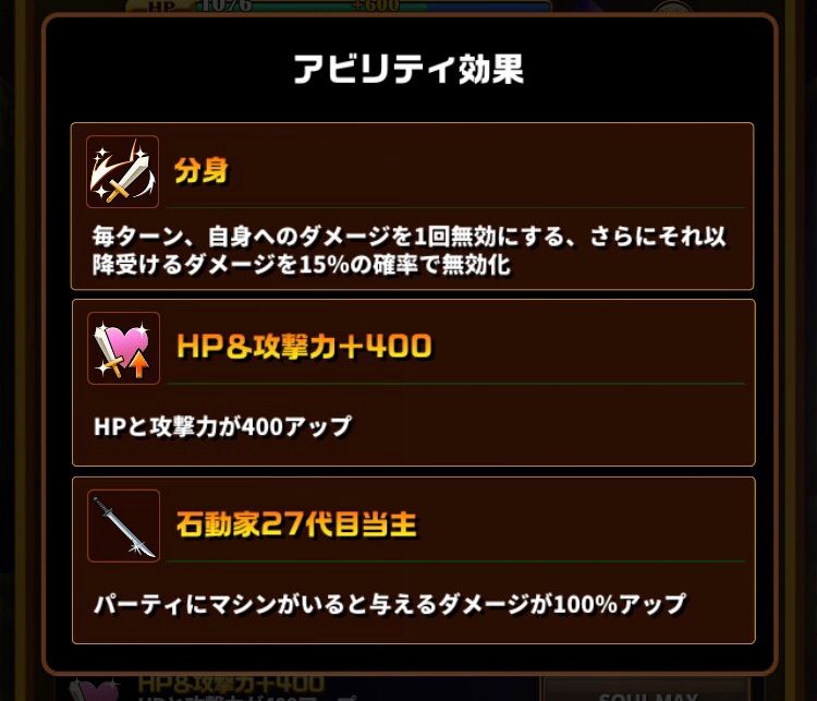アビリティのちからによって、一度発動すると次のターンスキルを使わなくてもスキルが発動します。とはいえ、スキル3もかなり発動しやすい形をしており、あまり頼ることにはならないアビリティかもしれません。
