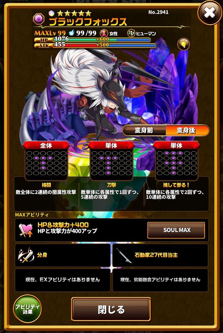 ブラックフォックスコラボ召喚限定モンスターです。